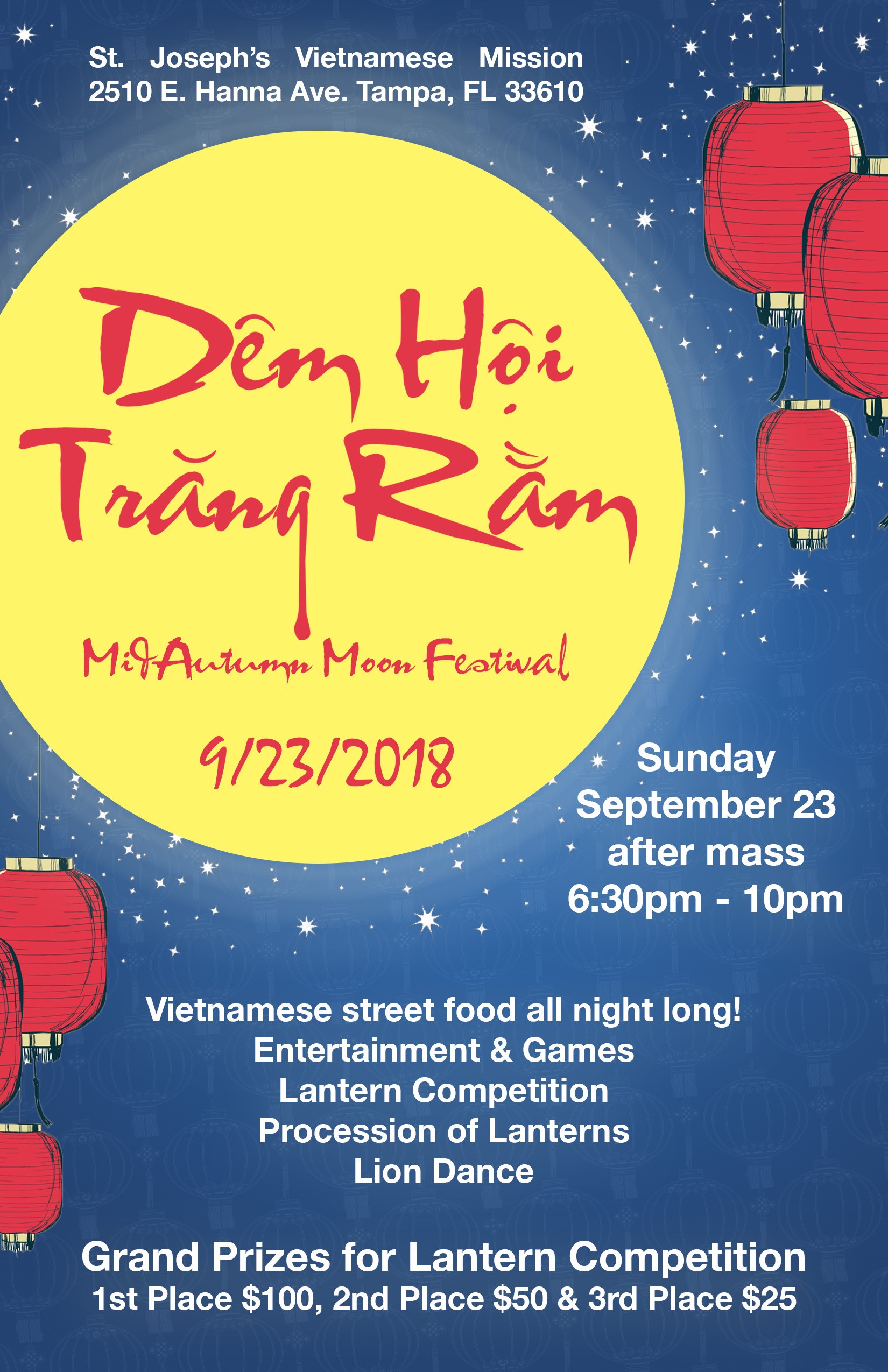 ngày 23 tháng 9, sau Thánh Lễ chiều từ 6:30pm tới 10:00pm.